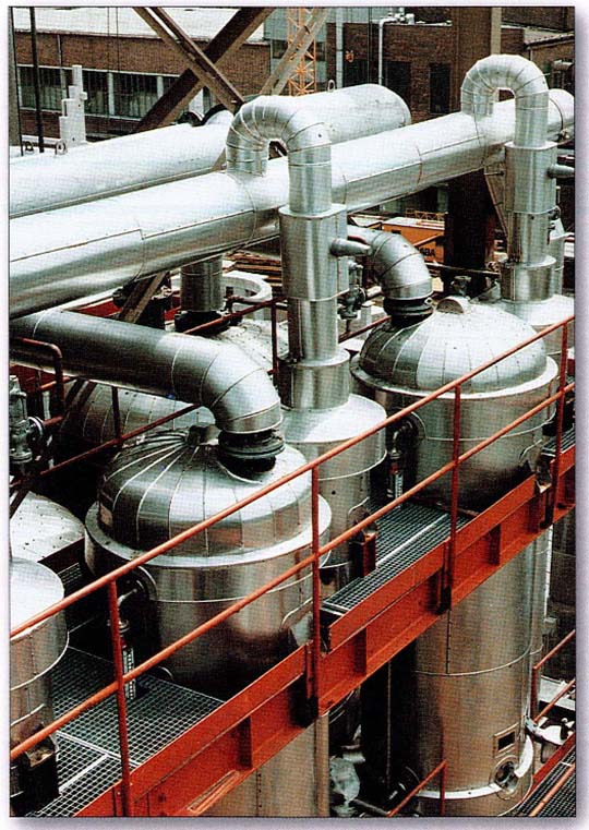 蒸發(fā)設(shè)備可分為普通多效蒸發(fā)器和閃蒸設(shè)備。Ebner閃急蒸發(fā)(簡稱閃蒸)設(shè)備是一種高效的多級(jí)連續(xù)真空蒸發(fā)設(shè)備,尤其適用于蒸發(fā)能力在5t/h以上,閃蒸設(shè)備因?yàn)槠湔舭l(fā)能力強(qiáng)、蒸汽耗用量小已在國內(nèi)廣泛推廣使用。酸浴閃蒸的特點(diǎn)是: