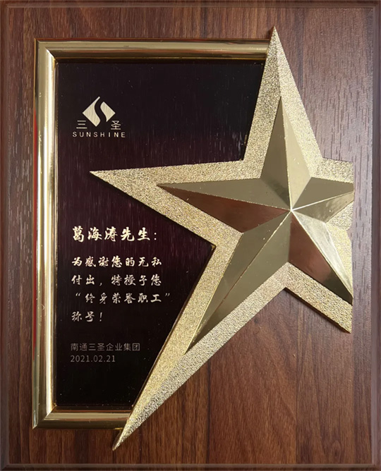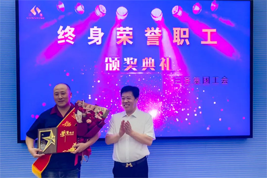 三圣奮斗史中閃耀著這樣一顆璀璨之星,他以堅定的信念和不懈的努力,登上榮譽巔峰,成為開發(fā)區(qū)當(dāng)之無愧的一名“金牌員工”,并被三圣集團(tuán)董事會、三圣工會授予“終身榮譽職工”的光榮稱號。
